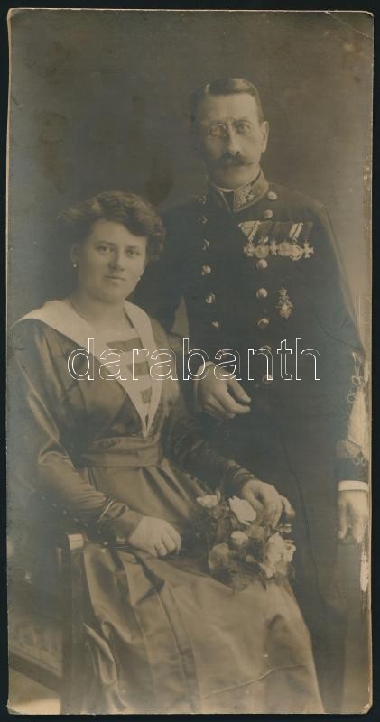 Leírás: cca 1918 Ezredes kitüntetésekkel 11x20 cm