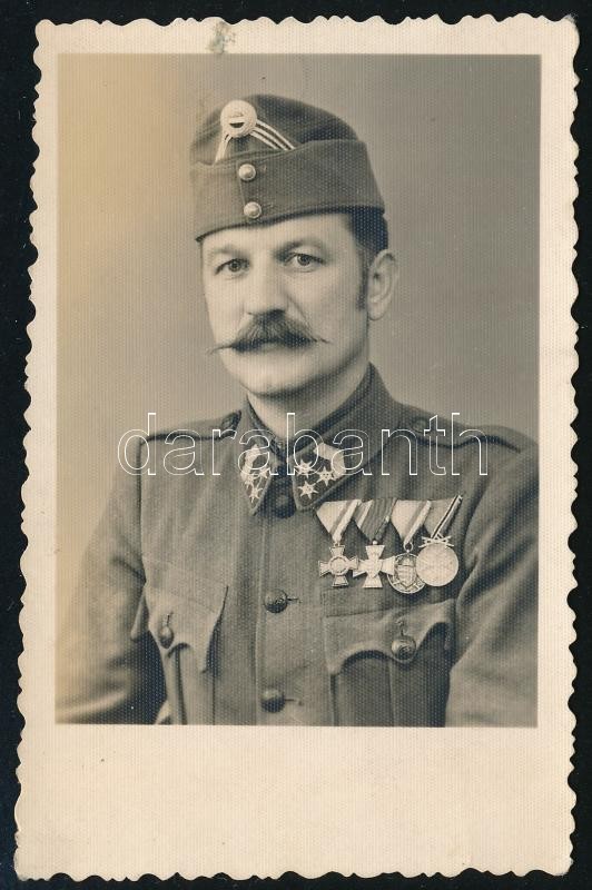 cca 1930 Frontharcos egyenruhában, kitüntetésekkel, fotó, 9×5,5 cm https://www.darabanth.com/hu/343-Gyorsarveres/343.0/Mutargy-papirregiseg-egyeb/Militaria~500028/cca-1930-Frontharcos-egyenruhaban-kituntetesekkel-foto-9C3975-5-cm~II1937239