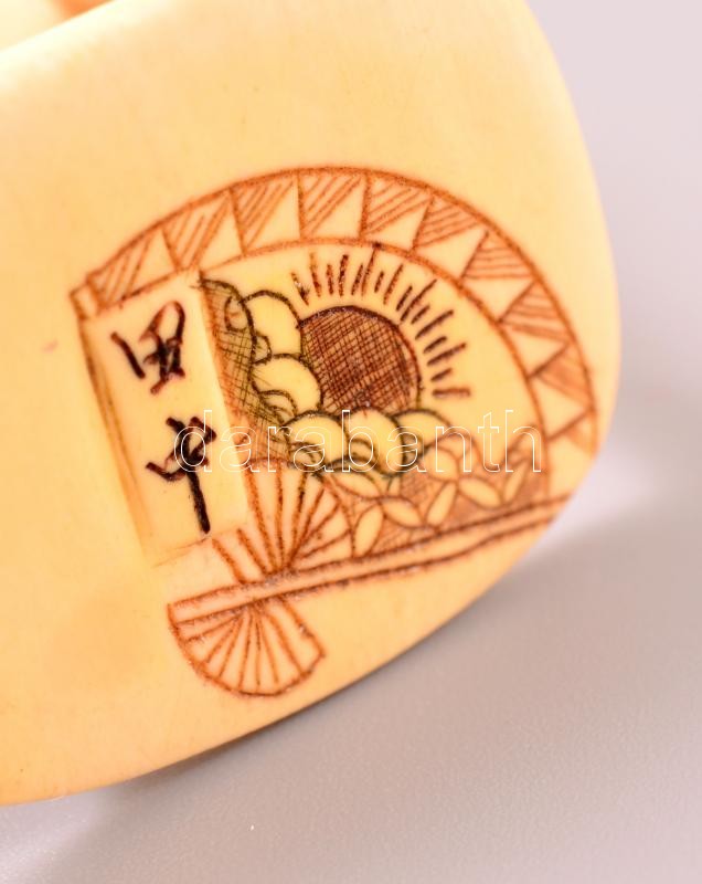 Leírás: XX. század eleje necuke, faragott elefántcsont figura, jelzett, m: 4,5 cm