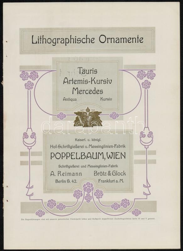 cca 1900 Szecessziós stílusú nyomtatványminta, K.u.k. Hof-Schriftgieße... https://www.darabanth.com/hu/343-Gyorsarveres/343.0/Mutargy-papirregiseg-egyeb/Nyomtatvanyok~500030/cca-1900-Szecesszios-stilusu-nyomtatvanyminta-Kuk-Hof-SchriftgieC39Ferei-Poppelbaum-Wien-4p~II1933695