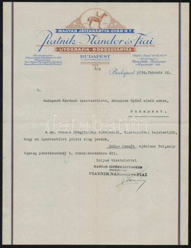 1934 Bp., Piatnik Nándor és Fiai Magyar Játékkártyagyár Rt. fejléces l... https://www.darabanth.com/hu/343-Gyorsarveres/343.0/Mutargy-papirregiseg-egyeb/Okmanyok~500018/1934-Bp-Piatnik-Nandor-es-Fiai-Magyar-Jatekkartyagyar-Rt-fejleces-levelpapirjara-irt-l~II1935762
