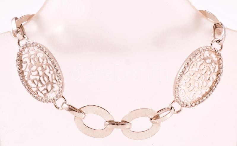 Leírás: Ezüst(Ag) áttört mintás köves karkötő, jelzett, h: 20 cm, bruttó: 10,8 g