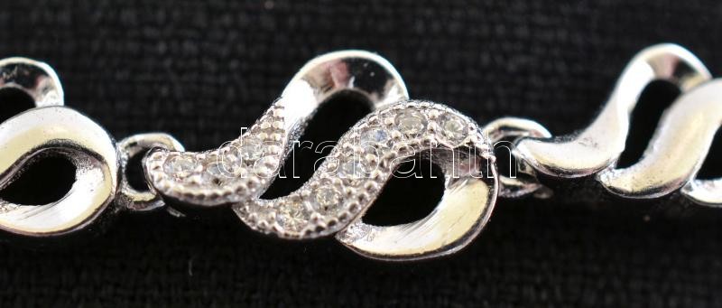 Leírás: Ezüst(Ag) fantáziamintás karkötő, kövekkel díszített, jelzett, állítható hosszúság: 18-21 cm, bruttó: 8,9 g