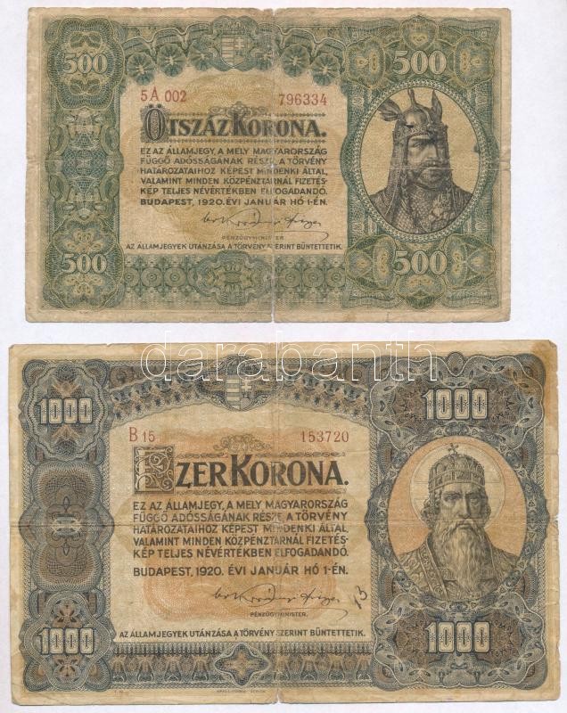 1920. 500K "Orell Füssli Zürich" + 1920. 1000K "Orell F... https://www.darabanth.com/hu/343-Gyorsarveres/343.0/Numizmatika/Magyar-bankjegyek~1500007/1920-500K-Orell-Fussli-Zurich-plus-1920-1000K-Orell-Fussli-Zurich-TIII--Adamo-K33-K36~II1937672