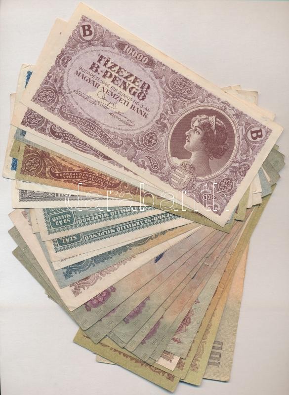 Leírás: 35db-os vegyes pengő tétel, közte több szép tartású 1946. 10.000BP T:II-III-