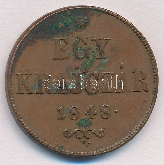 Adamo B1 https://www.darabanth.com/hu/343-Gyorsarveres/343.0/Numizmatika/Magyar-es-magyar-verdejelu-fem-es-ezustpenzek~1500008/1848-1kr-Cu-T1-2-patina-Adamo-B1~II1939200