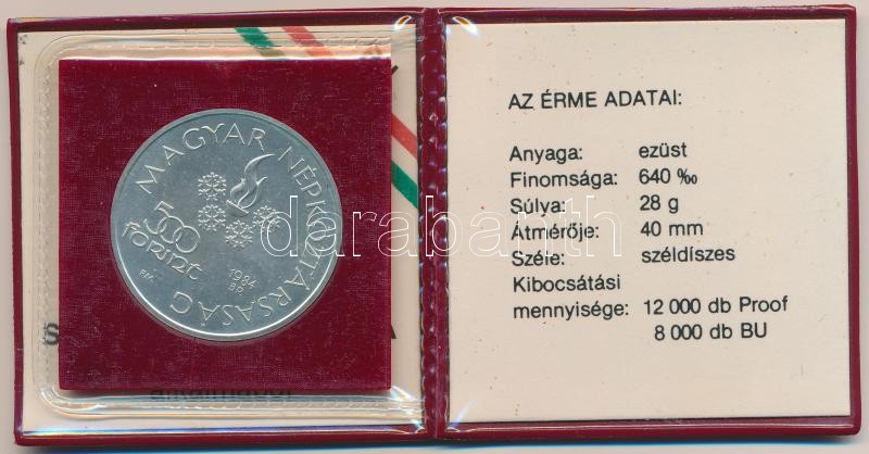 Leírás: 1984. 500Ft Ag "Sarajevoi Téli Olimpia" eredeti, sérült tokban, tanúsítvánnyal T:BU
