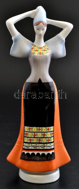 Leírás: Aquincumi népviseletes lány, kézzel festett, jelzett, apró kopásokkal, m: 24,5 cm
