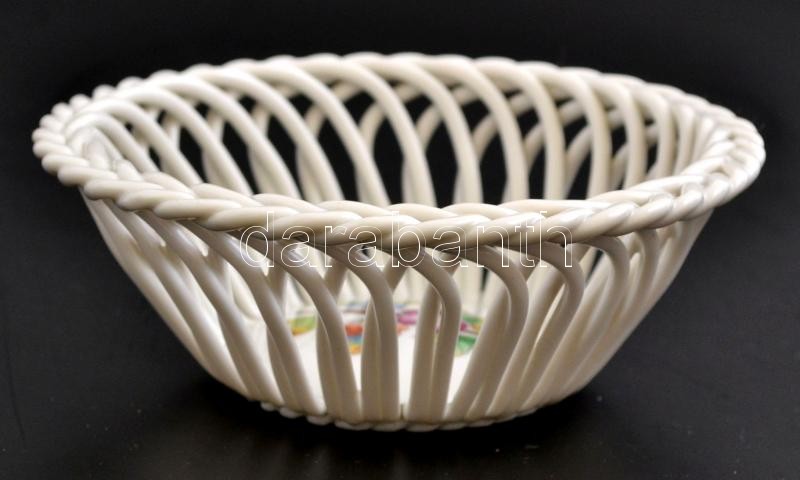Leírás: Herendi Viktória mintás fonott kosár, kézzel festett, jelzett, apró kopásnyomokkal, d: 13 cm