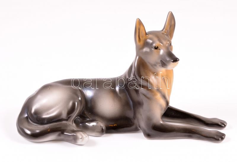 Leírás: Hollóházi porcelán kutya, kézzel festett, jelzett, apró kopásnyomokkal, h: 20,5 cm