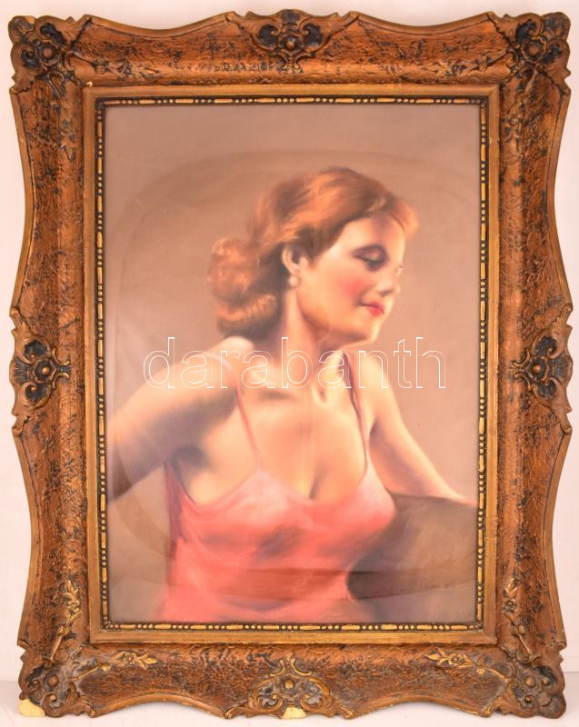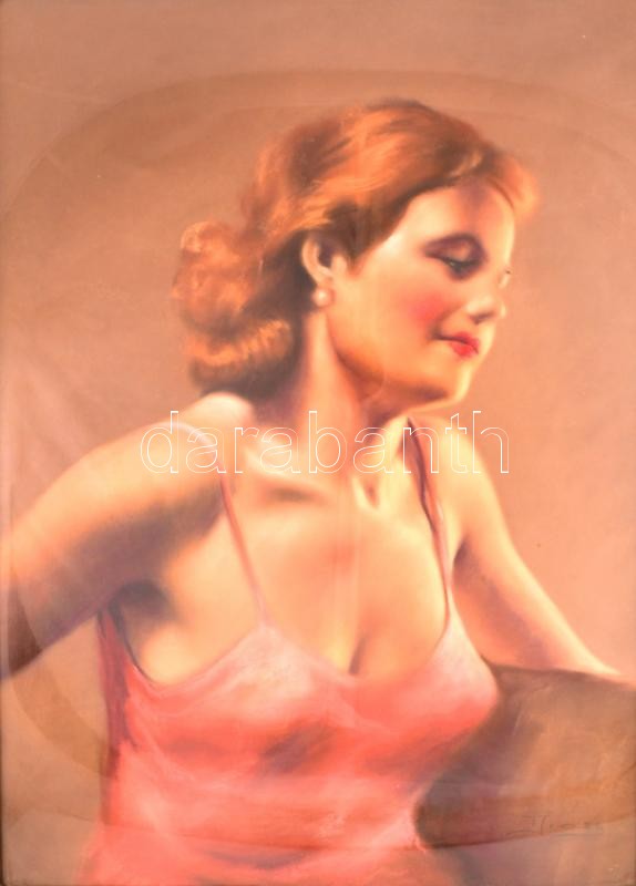 Leírás: Diósi Sándor (1900-1949): Kombinés lány. Pasztell, papír, jelzett, üvegezett keretben, 70×50 cm