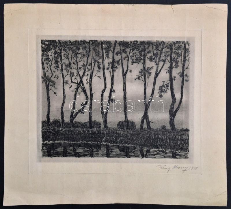 Leírás: Franz Abony (?-?): Tájkép fákkal, rézkarc, papír, jelzett, 22×28 cm