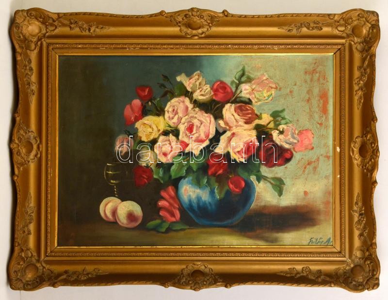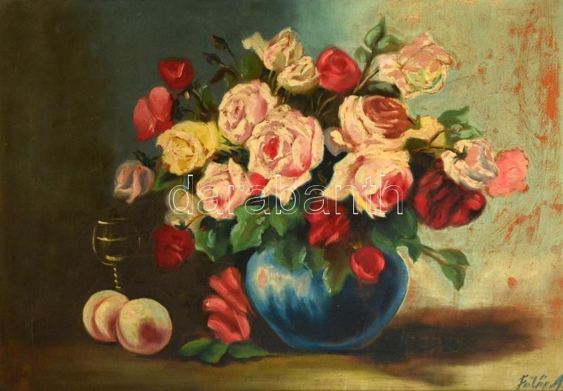 Fülöp jelzéssel: Virágcsendélet. Olaj, karton, kis festék kopásokkal, ... https://www.darabanth.com/hu/344-Gyorsarveres/344.0/Festmenyek-es-grafikak/Festmenyek-es-grafikak~2/Fulop-jelzessel-Viragcsendelet-Olaj-karton-kis-festek-kopasokkal-kereten-apro-hibakkal~II1889329