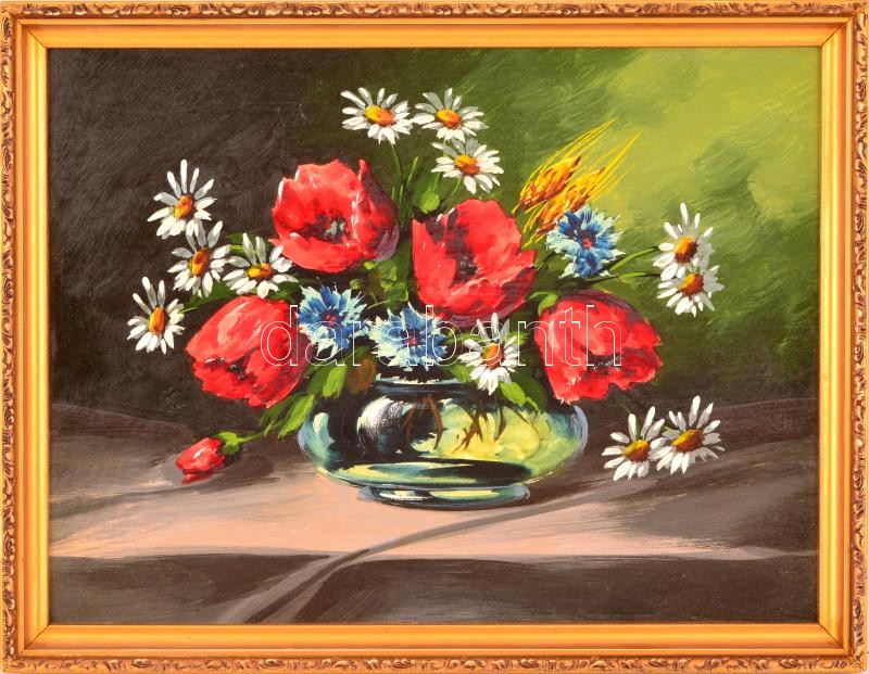 Leírás: Jelzés nélkül: Mezei virágok. Olaj, farost, keretben, 24×33 cm