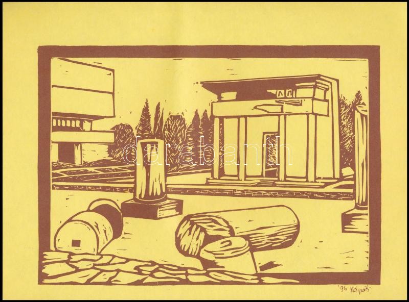 Leírás: Kárpáti jelzéssel: Linó, papír. Jelzett. 16x23 cm