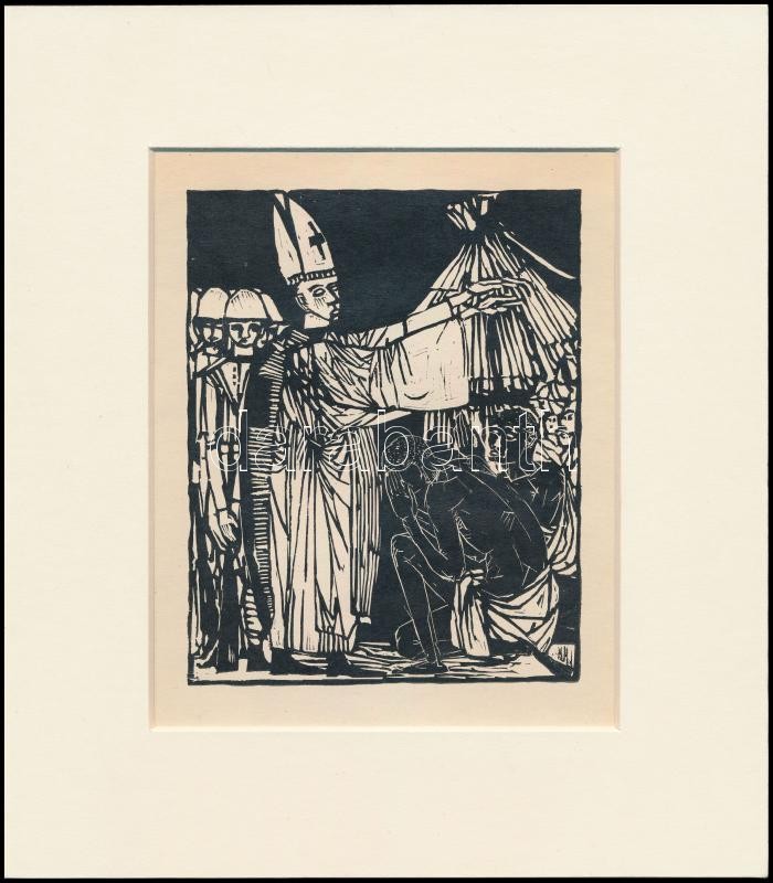 Leírás: Kondor Béla (1931-1972): Illusztráció, fametszet, papír, jelzés nélkül, 11x14 cm paszpartuban