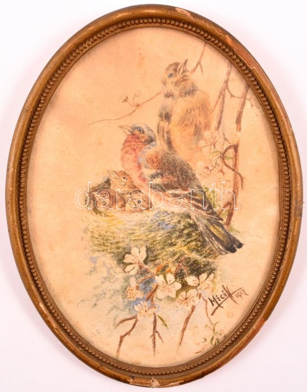 Micik jelzéssel: Fészeklakók, akvarell, papír, üvegezett fa keretben, ... https://www.darabanth.com/hu/344-Gyorsarveres/344.0/Festmenyek-es-grafikak/Festmenyek-es-grafikak~2/Micik-jelzessel-Feszeklakok-akvarell-papir-uvegezett-fa-keretben-23C39717-cm~II1948411