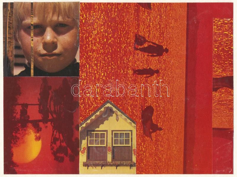 Leírás: Németh Ami (?-?): Kollázsok, 4 db. Vegyes technika, papír, 12×12 és 30×20 cm