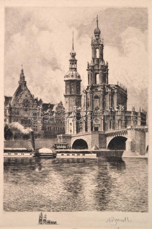 Leírás: Olvashatatlan jelzéssel: Drezda, rézkarc, papír, jelzett, 27×19 cm