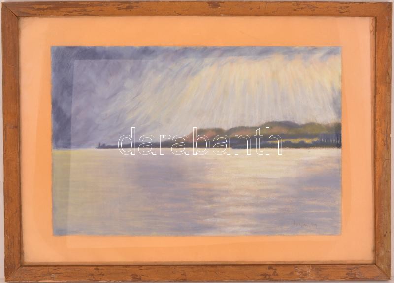 Leírás: Varjas jelzéssel: Tihanyi félsziget. Pasztell, papír, üvegezett keretben, 31×49 cm