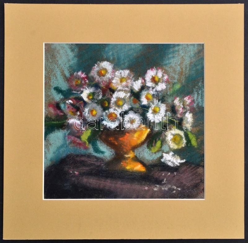 Leírás: Zágoni Szabó Lea (1900-1992): Virágcsendélet. Pasztell, papír, jelzett, 21×21 cm