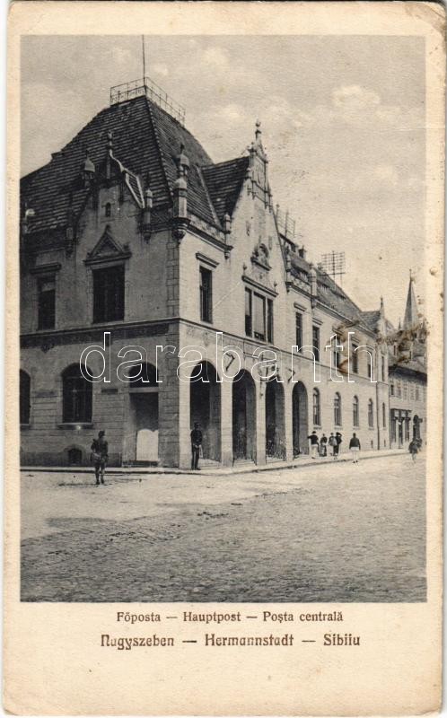 Nagyszeben, Hermannstadt, Sibiu; Fő posta hivatal. Jos. Drotleff Kunst... https://www.darabanth.com/hu/344-Gyorsarveres/344.0/Kepeslapok/Erdely~1500005/Nagyszeben-Hermannstadt-Sibiu-Fo-posta-hivatal-Jos-Drotleff-Kunstanstalt-Nr-43-Hauptpost-~II1952525