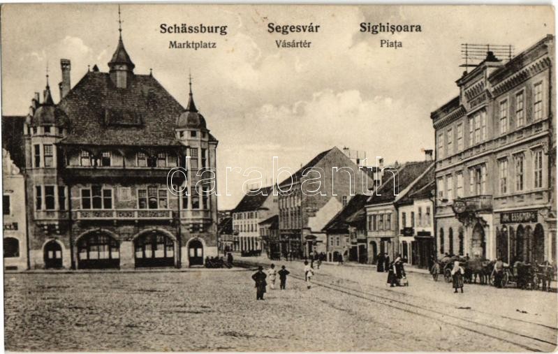 Segesvár, Schässburg, Sighisoara; Marktplatz / Vásártér, Essigmann üzl... https://www.darabanth.com/hu/344-Gyorsarveres/344.0/Kepeslapok/Erdely~1500005/Segesvar-Schassburg-Sighisoara-Marktplatz-Vasarter-Essigmann-uzlete-Kiadja-W-Nagy-Pi~II1951921