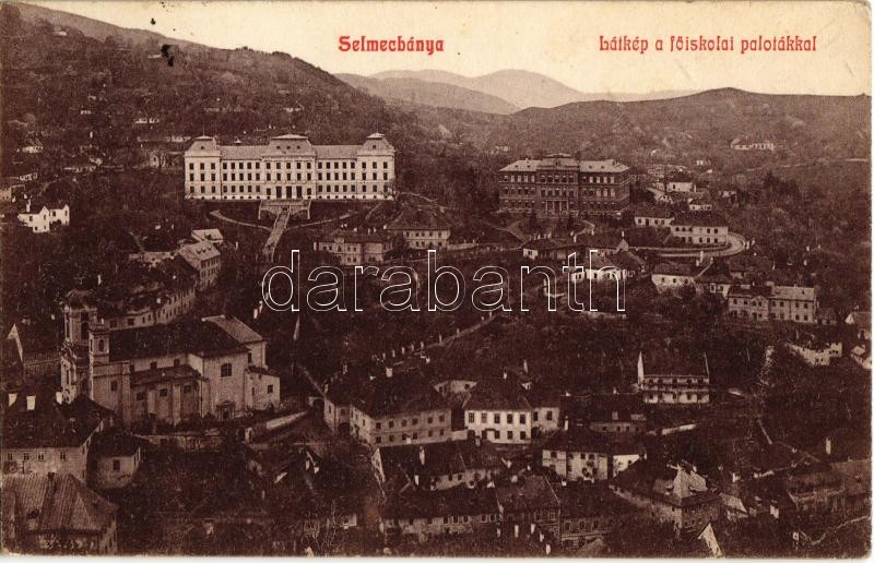1907 Selmecbánya, Schemnitz, Banská Stiavnica; látkép a főiskolai palo... https://www.darabanth.com/hu/344-Gyorsarveres/344.0/Kepeslapok/Felvidek~1500006/1907-Selmecbanya-Schemnitz-Banska-Stiavnica-latkep-a-foiskolai-palotakkal-general-view-wi~II1953896