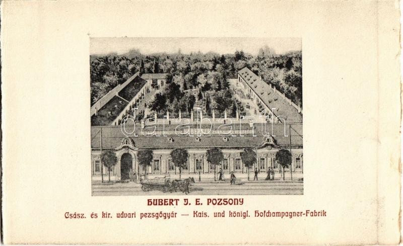 Pozsony, Pressburg, Bratislava; Hubert J. E. Cs. és kir. udvari pezsgőgyára / Kais. und königl. Hofchampagner Fabrik / champagne factory, sparkling wine - képeslapfüzetből / from postcard booklet