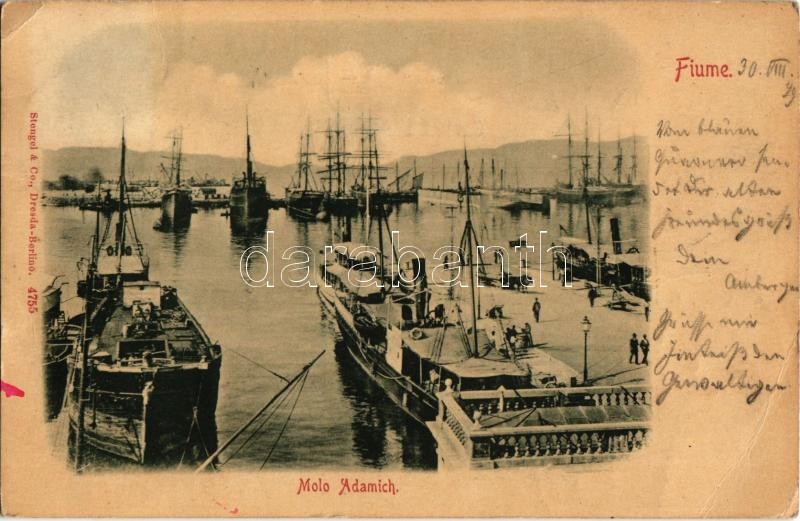 1899 Fiume, Rijeka; Molo Adamich / port with ships (EK) https://www.darabanth.com/hu/344-Gyorsarveres/344.0/Kepeslapok/Horvatorszag~1500008/1899-Fiume-Rijeka-Molo-Adamich-port-with-ships-EK~II1952667