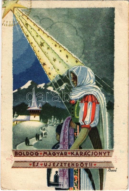 Leírás: 1943 Boldog magyar karácsonyt és új esztendőt! / Hungarian irredenta Christmas and New Year greeting art postcard s: Bozó (EK)
