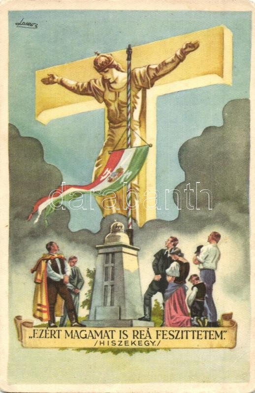 Leírás: Ezért magamat is reá feszíttetem (Hiszekegy). Kiadja az Ereklyés Országzászló Nagybizottsága / Hungarian irredenta propaganda s: Lamoss (EK)