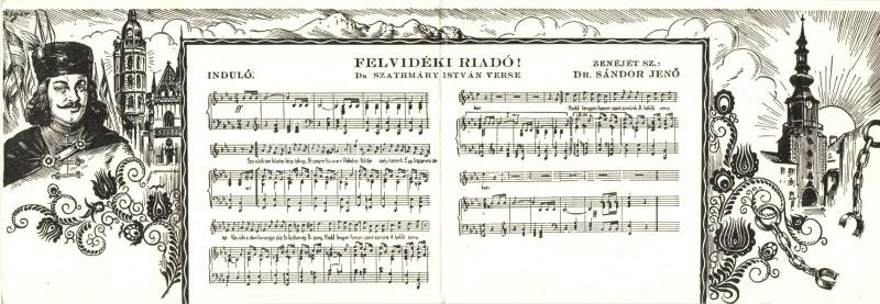 Felvidéki riadó! Rákóczi Ferenc induló kottával. Kihajtható képeslap. Magyar Nemzeti Szövetség kiadása / Hungarian irredenta marching song with music sheet, folding card s: Zsolt