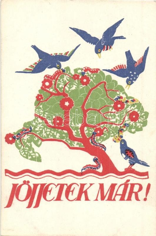 Leírás: Jöjjetek már! Kiadja a Szózat Magyarország Területi Épségének Védelmi Ligájának napilapja / Hungarian irredenta art postcard