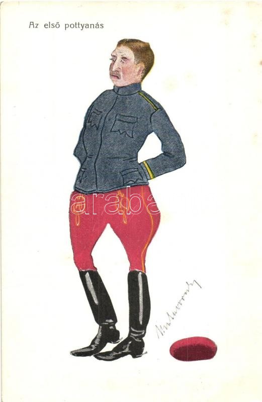 Az első pottyanás / K.u.K. Officer hussar, military art postcard s: Ma... https://www.darabanth.com/hu/344-Gyorsarveres/344.0/Kepeslapok/Katonai~1500069/Az-elso-pottyanas-KuK-Officer-hussar-military-art-postcard-s-Matavovszky~II1879445