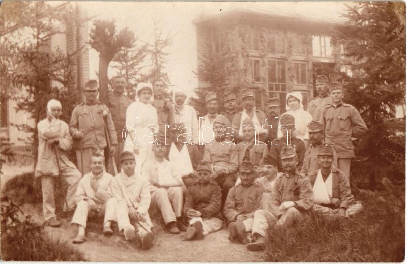 Leírás: Galicia, Galizien; sérült katonák a kórház udvarán nővérekkel / WWI K.u.K. military, injured soldiers with nurses on the hospital's courtyard. photo
