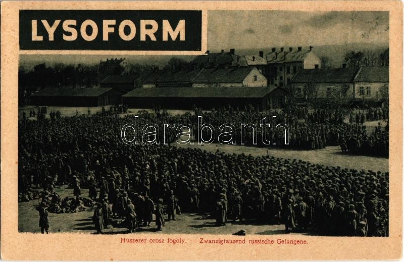 Húszezer orosz hadifogoly. Lysoform fertőtlenítő reklámja / Zwanzigtau... https://www.darabanth.com/hu/344-Gyorsarveres/344.0/Kepeslapok/Katonai~1500069/Huszezer-orosz-hadifogoly-Lysoform-fertotlenito-reklamja-Zwanzigtausend-russische-Gefangene-~II1949985