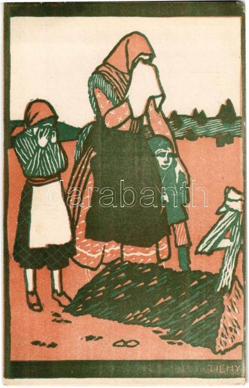 M. kir. 16. honvéd gyalogezred özvegy- és árvaalapja javára / WWI Austro-Hungarian K.u.K. military art postcard, charity card for the orphans and widows of the 16th Infantry Regiment s: Tichy (kis sarokhiány / small corner shortage)