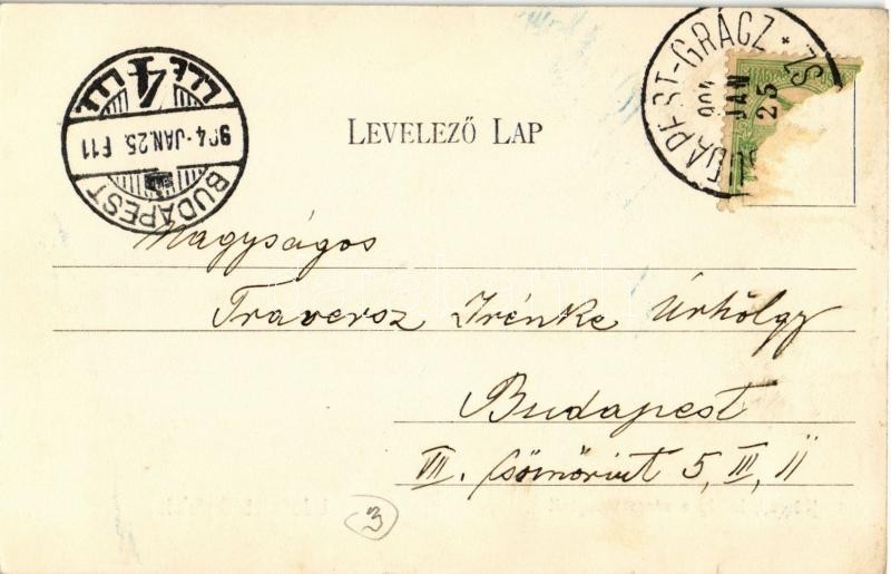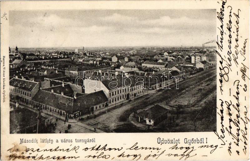 Leírás: 1904 Győr, látkép a város tornyáról. Kiadja Berecz Viktor + Budapest-Grácz vonat bélyegző
