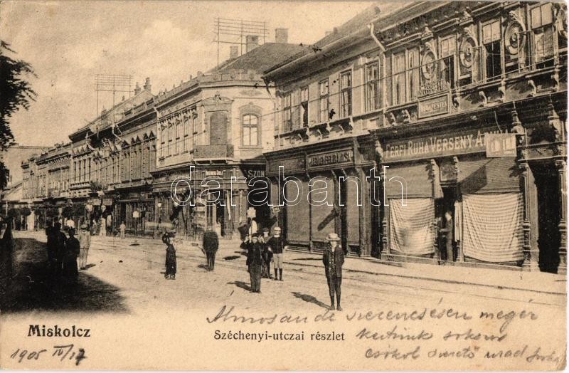 1905 Miskolc, Széchenyi utca, üzletek (EK) https://www.darabanth.com/hu/344-Gyorsarveres/344.0/Kepeslapok/Magyarorszag~1500004/1905-Miskolc-Szechenyi-utca-uzletek-EK~II1952232
