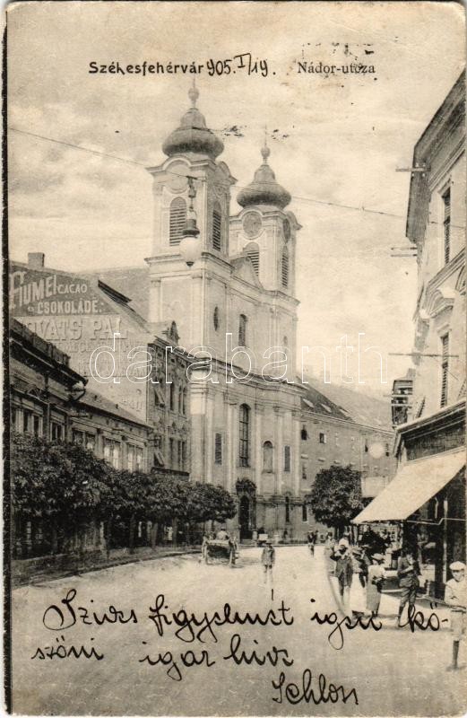 1905 Székesfehérvár, Nádor utca, Fiumei Cacao és csokoládé reklám, Kov... https://www.darabanth.com/hu/344-Gyorsarveres/344.0/Kepeslapok/Magyarorszag~1500004/1905-Szekesfehervar-Nador-utca-Fiumei-Cacao-es-csokolade-reklam-Kovats-Pal-reklamja-t~II1953120
