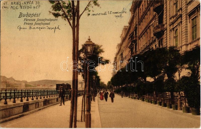 1908 Budapest V. Ferenc József rakpart, villamos https://www.darabanth.com/hu/344-Gyorsarveres/344.0/Kepeslapok/Magyarorszag~1500004/1908-Budapest-V-Ferenc-Jozsef-rakpart-villamos~II1952649