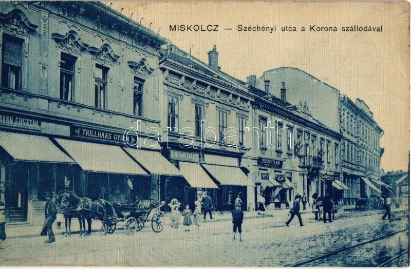 1915 Miskolc, Széchenyi utca, Hotel Korona szálloda, Trillhaas Gyula, ... https://www.darabanth.com/hu/344-Gyorsarveres/344.0/Kepeslapok/Magyarorszag~1500004/1915-Miskolc-Szechenyi-utca-Hotel-Korona-szalloda-Trillhaas-Gyula-Heinemann-Frigyes-Herskovit~II1952239