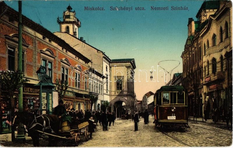 1915 Miskolc, Széchenyi utca, Nemzeti Színház, vasgyár felé közlekedő ... https://www.darabanth.com/hu/344-Gyorsarveres/344.0/Kepeslapok/Magyarorszag~1500004/1915-Miskolc-Szechenyi-utca-Nemzeti-Szinhaz-vasgyar-fele-kozlekedo-villamos-Liebling-uzl~II1951541
