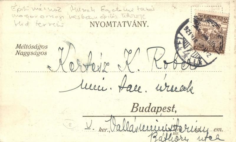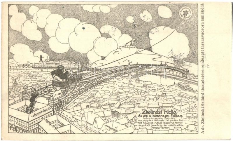 1921 Budapest, Zielinski hídja és az a bizonyos csillag a Közmunkák tanácsa és városháza között. Dr. Zielinski Szilárd (építőmérnök, műegyetemi tanár, a magyarországi vasbetonépítés úttörője) tiszteletére rendezett társasvacsora emlékéül