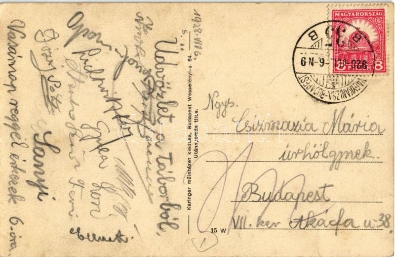 Leírás: 1928 Gárdony, Tó részlet a Vértesekkel, fürdőzők + Nagykanizsa-Budapest 35. vasúti bélyegző