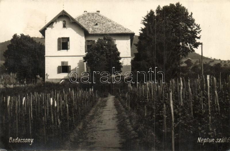 1929 Badacsony, Neptun szálloda, szőlőskert. photo https://www.darabanth.com/hu/344-Gyorsarveres/344.0/Kepeslapok/Magyarorszag~1500004/1929-Badacsony-Neptun-szalloda-szoloskert-photo~II1700133