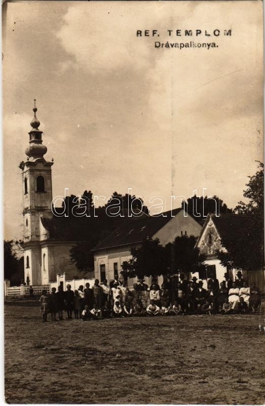 1929 Drávapalkonya, Református templom, hívők vasárnapi ruhában. Pozse... https://www.darabanth.com/hu/344-Gyorsarveres/344.0/Kepeslapok/Magyarorszag~1500004/1929-Dravapalkonya-Reformatus-templom-hivok-vasarnapi-ruhaban-Pozsegovits-Gy-photo-plus-Berem~II1948647
