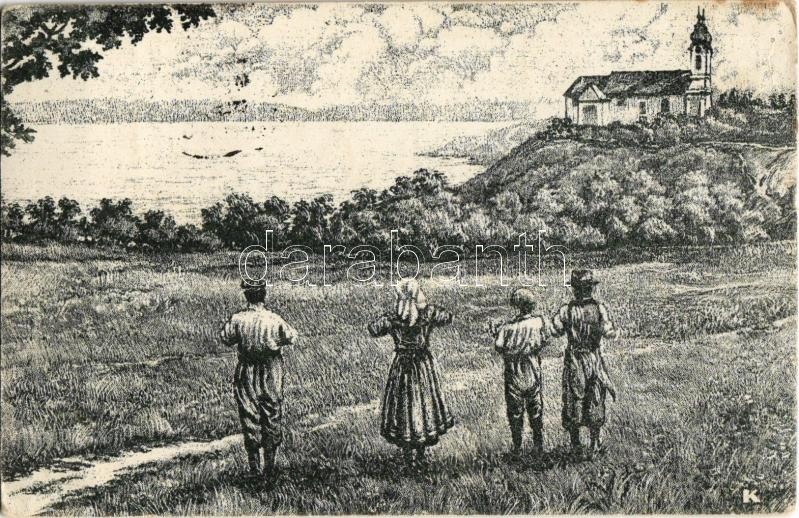 Leírás: 1934 Tihany, üdvözlő művészlap. A Balatoni Szövetség kiadása (EK)
