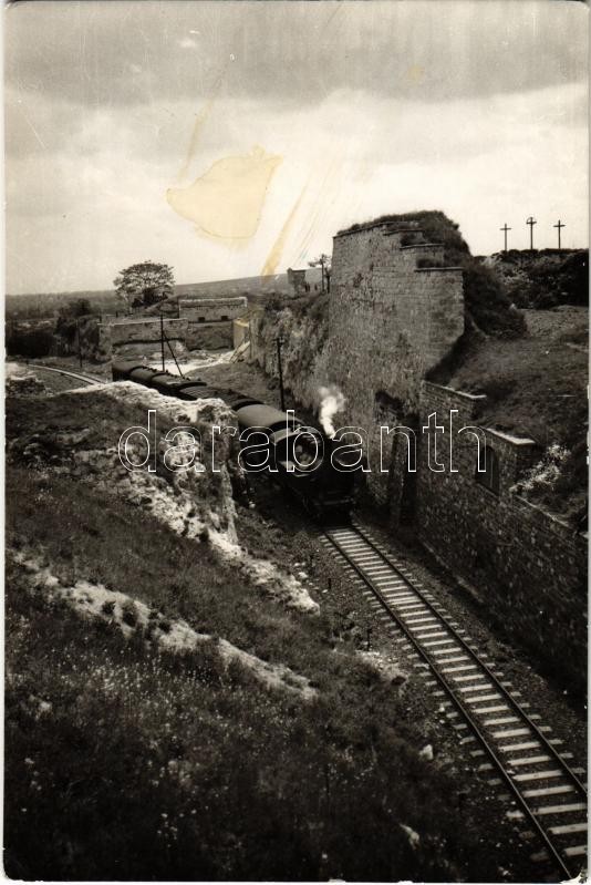Leírás: 1958 Eger, vár részlet a vasúttal, gőzmozdony. Képzőművészeti Alap Kiadóvállalat (EK)